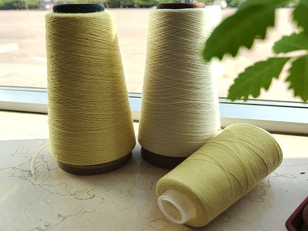 对位芳纶短纤维纱线的基础原材料是对位芳纶短纤维,可纺制成100%对位芳纶纱线或是与其他有机纤维、无机纤维如氨纶、钢丝、玻璃纤维、UHMWPE等以不同的加工工艺组合纺制满足耐切割、阻燃、耐高温、防电弧等不同功能制品的需求