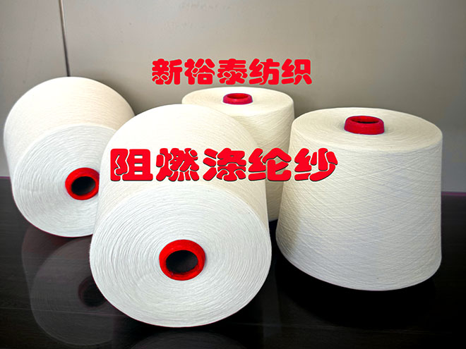 阻燃涤纶纱或者涤纶阻燃纱,是一种改性涤纶纱线,该种纱线是涤纶分子通过共聚的化学反应而生成的,该种纤维纱线具有长久的阻燃性,阻燃效果不会随着水洗次数的增加而改变